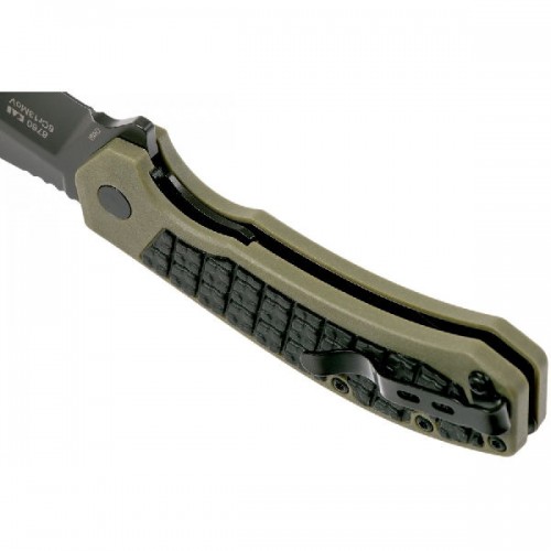 Faultline — новинка 2018 года. Нож предназначен для ежедневного ношения. Клинок типа Clip point изготовлен из нержавеющей стали 8Cr13MoV. Рукоятку в модели Faultline формируют накладки из усиленного стекловолокном нейлона. Фиксируются накладки, помимо осевых креплений, набором небольших стальных болтов.