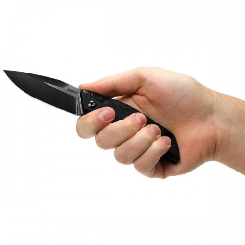 Сталь клинка 8Cr14MoV — это недорогой китайский сплав, который часто встречается на ножах повседневного ношения. Он не ржавеет и легко правится, но стоит отметить, что и заточку он держит средне. Обработка клинка — черное антибликовое покрытие Black Oxide.