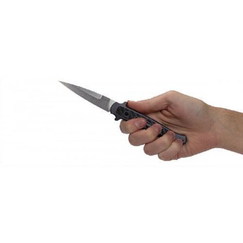 Алюминиевая рукоять с прочными карбоновыми накладками комфортно ложится в руку. Материал устойчив к коррозии, невосприимчив к химическим веществам и легко переносит довольно большие механические нагрузки.
