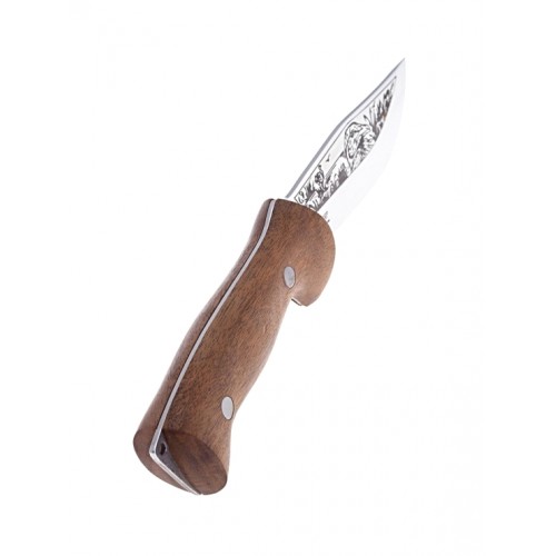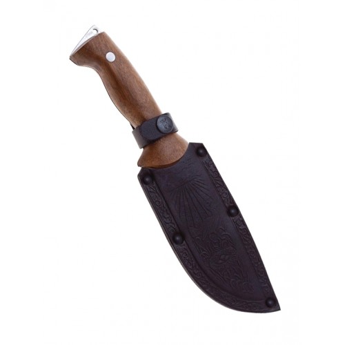 Нож туристический Дрофа - это прекрасный и недорогой представитель туристической линейки от известнейшей компании Кизляр. Он был разработан и изготовлен для суровых испытаний и возможных больших нагрузок. Клинок изготовлен из традиционно славящейся твердостью стали 65Х13, широкий клинок особой формы позволяет использовать нож Дрофа Кизляр в самых различных ситуациях. Накладки из кавказского ореха с помощью заклепок надежно прикреплены к хвостовику, тем самым сохраняется удобство хвата при общей прочности конструкции - такой нож можно даже метать или прилагать высокие нагрузки к рукояти без боязни повредить рукоять или сломать клинок. Особый запоминающийся вид ножу придает удобная рукоять, художественная гравировка на клинке и поясные ножны из натуральной кожи, на которых также изображен рисунок с дрофой.
