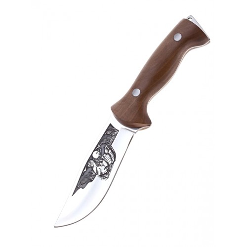 Нож туристический Дрофа - это прекрасный и недорогой представитель туристической линейки от известнейшей компании Кизляр. Он был разработан и изготовлен для суровых испытаний и возможных больших нагрузок. Клинок изготовлен из традиционно славящейся твердостью стали 65Х13, широкий клинок особой формы позволяет использовать нож Дрофа Кизляр в самых различных ситуациях. Накладки из кавказского ореха с помощью заклепок надежно прикреплены к хвостовику, тем самым сохраняется удобство хвата при общей прочности конструкции - такой нож можно даже метать или прилагать высокие нагрузки к рукояти без боязни повредить рукоять или сломать клинок. Особый запоминающийся вид ножу придает удобная рукоять, художественная гравировка на клинке и поясные ножны из натуральной кожи, на которых также изображен рисунок с дрофой.