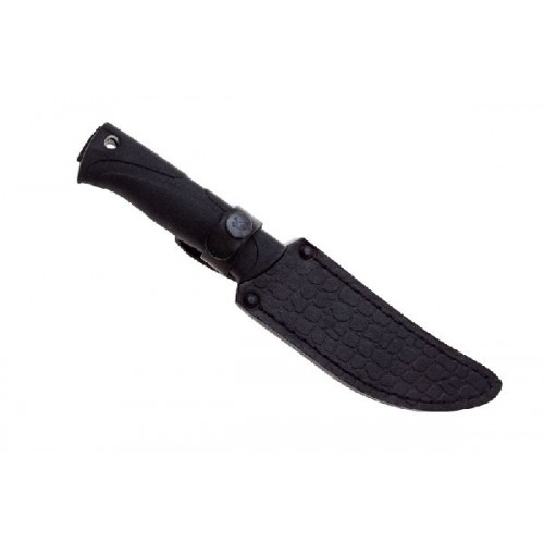 Разделочный нож серии «Гюрза-2» функционален и практичен. Стальной клинок украшен изображением одноименной змеи, рукоять выполнена из резинопластика Elastron G, а ножны – из натуральной кожи.