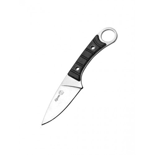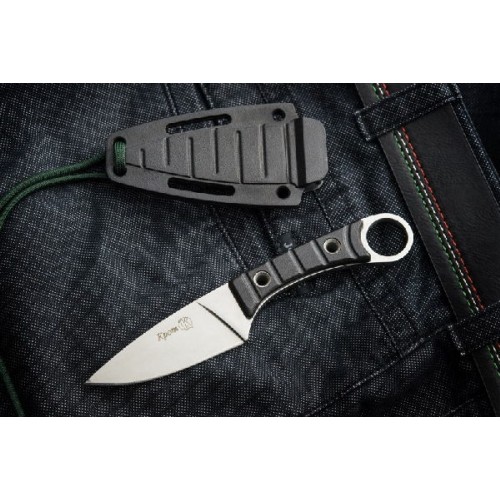 Ножны имеют крепежные отверстия, которые позволяют разместить нож на одежде или снаряжении любым другим способом. За счет этих же отверстий к ножнам можно прикрепить НАЗ (носимый аварийный запас) Несмотря на свои небольшие размеры, нож комфортно ложится в руку, а компактная рукоять имеет цепкий хват благодаря дополнительным вертикальным насечкам . За счет удобной рукоятки, можно передать на клинок четко рассчитанное усилие при резе и максимальное усилие при совершении колющего удара. При помощи отверстия в тыльной части, нож надежно фиксируется пальцем при прямом и обратном хвате - его практически невозможно выбить из руки.