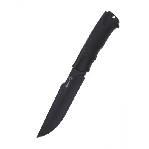 Нож «Орлан-2», выпускаемый предприятием «Кизляр», может пригодиться как охотникам и туристам, так и военнослужащим для выполнения хозяйственно-бытовых работ в полевых условиях. Нож не относится к гражданскому холодному оружию и прошел сертификацию как разделочный. Длина ножа «Орлан» составляет 270 мм. Клинок имеет форму, близкую к копьеобразной, основное лезвие образуется длинными вогнутыми спусками, а голомени клинка имеют усиливающие ребра жесткости. В корневой части клинка со стороны обуха сделан упор для большого пальца, позволяющий более удобно использовать нож при резке. Кроме этого, функции крестовины, предохраняющей руку при колющих ударах выполняет специальный выступ на рукояти со стороны лезвия. Клинок «Орлана» изготавливается из стали 65Х13. Твердость достигает 55-57 HRC, а на клинок наносится темное антибликовое покрытие. Рукоять изготавливается из резинопластика Elastron G , который напрессовывается на проходящий по всей длине рукоятки хвостовик клинка. Комплектуется нож «Орлан» поясными кожаными ножнами.