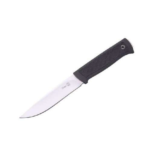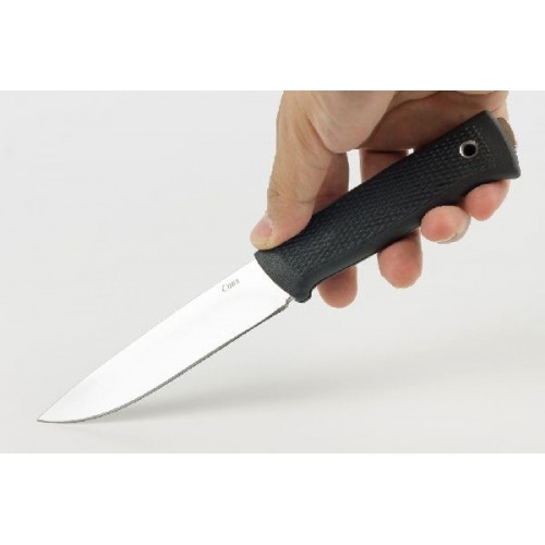 Нож Сова имеет классический прямой клинок, который подходит для решения большинства ежедневных задач на охоте, на рыбалке или в быту. Те, кто предпочитает использовать ножи для тонкой работы, по достоинству оценят высокие спуски и тонкое сведение. Те, кто привык использовать нож в тяжелых условиях, оценят толщину обуха и сплошной клинок, который проходит насквозь через рукоять. Благодаря такой конструкции нож легко режет толстые ветки и выдерживает большие нагрузки на скручивание. Клинок изготовлен из устойчивой к коррозии стали, которая закалена до 55-57 HRC. Рукоятка ножа выполнена из практичного эластрона, с цепким рифлением. Нож рассчитан на эксплуатацию в самых различных условиях: легко и без последствий «переночует» в траве или в снегу, если вы вдруг случайно забудете убрать его. Нож укомплектован пластиковыми ножнами, которые подвешиваются к поясу с помощью синтетической стропы. Нож плотно сидит в ножнах, не издает никаких звуков при движении. Нож легко вынимается из ножен одной рукой.