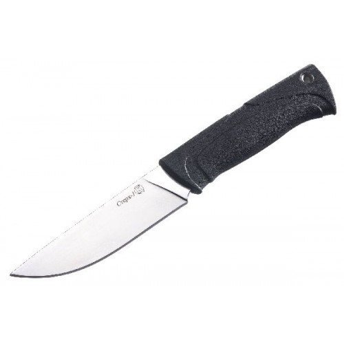 Название ножу дали в честь разновидности белых журавлей, гнездящихся на севере России. Серия ножей «Стерх» вобрала в себя благородство и плавность линий этой птицы. Клинок ножа прямой, с небольшим выпуклым скосом обуха. Форма клинка достаточно универсальна и подходит для большинства возможных работ. Спуски клинка от обуха. Такая форма заточки и тонкая режущая кромка обеспечивают клинку прекрасные режущие качества. Удобные ножны погружного типа изготовлены из натуральной качественной кожи.