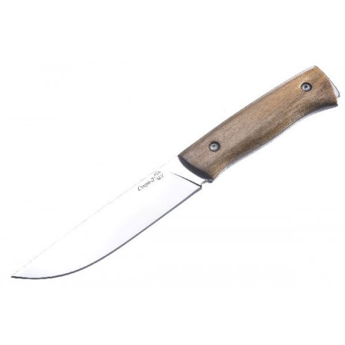 Модель «СТЕРХ-2» компании КИЗЛЯР понравится ценителям вечной ножевой классики. Нож имеет проверенную временем геометрию клинка с прямым обухом и плавным подъемом режущей кромки. Ножом удобно строгать древесину, рубить ветки, резать ткань и пластик, чистить рыбу и разделывать некрупную боровую дичь. Клинок из твердой нержавеющей стали сохраняет остроту в течение длительного времени. Разборная конструкция рукояти позволяет легко чистить нож в полевых условиях. Ножны из толстой кожи прошиты надежными нитками и усилены металлическими заклепками. В нижней части ножен расположено отверстие для отвода влаги.