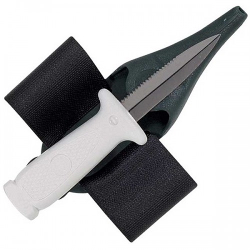 Маленький (всего 150 мм) нож с обоюдоострым клинком. Одна кромка лезвия снабжена серрейторной заточкой. Нож комплектуется пластиковым чехлом, предназначенным для крепления на лодыжке или запястье. Рукоятка ножа фиксируется в ножнах посредством резиновой петли.