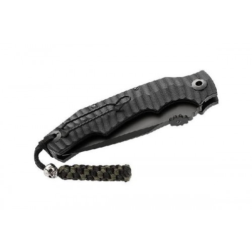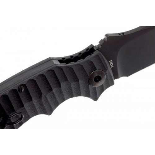 Клинок ножа изготовлен из прекрасно зарекомендовавшей себя стали CARPENTER CTS BD1 и имеет черное антибликовое покрытие из карбонитрида титана. Данное покрытие, помимо антибликовых свойств, надежно защищает поверхность клинка от царапин. По твердости покрытие близко к алмазу. Эргономичная рукоять изготовлена из армированного стекловолокном материала Zytel, стойкого к ударам, истиранию и перепадам температур.