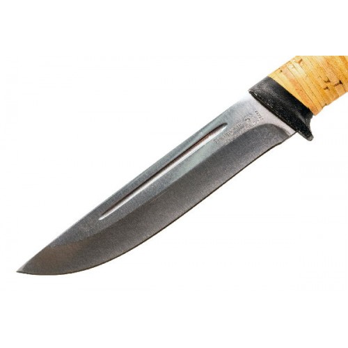 Форма клинка имеет легкие и изящные очертания. Традиционный прямой обух хорошо приспособлен для реза и проколов острием. Он легко справится как с нарезкой продуктов, так и с разделкой рыбы или дичи и станет одним из незаменимых помощников в путешествии или на охоте. Нож имеет дол на клинке. Такая конструктивная особенность заметно снижает вес ножа и, при этом, сохраняет его высокую прочность и рабочие характеристики. Удобная рукоять будет приятно лежать в руке, не давая ножу выскользнуть, даже если он намокнет.