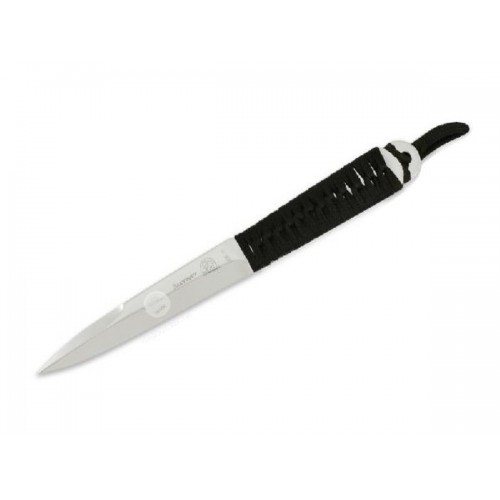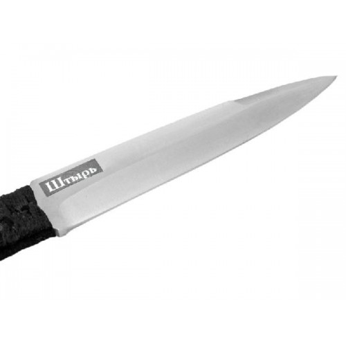 Нож Штырь – это нож со скошенной линией обуха клинка благодаря которой, он имеет отличные тычковые характеристики. Для изготовления ножа используется сталь ЭИ-107. Это прочный и надежный материал, который долго держит заточку и не дает вам поводов волноваться о том, что нож затупится и подведет вас в самый неподходящий момент. Нож Штырь – это идеальный баланс и высокое качество материалов. Он оптимален для развития координации и меткости. Его рукоять оплетена черным капроновым шнуром, что позволяет ножу комфортно ложиться в руку и не выскальзывать из нее.