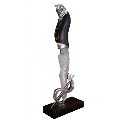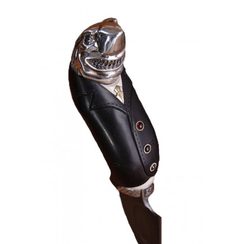 Нож "Акула Бизнеса" – это отличный подарок коллекционеру, начальнику или просто хорошему другу. Клинок выполнен из благородной дамасской стали, давно завоевавшей популярность благодаря своим рабочим характеристикам и оригинальному внешнему виду. Дамаск всегда был признаком статусности и указывал на истинного ценителя холодного оружия. Навершие и больстер изготовлены из итальянской бронзы и покрыты серебряным напылением. Своеобразная форма клинка еще больше придает оригинальности ножу и делает его действительно уникальным. Нож полностью оправдывает свое название – «Акула бизнеса». Вся композиция является символом успешного человека, находящегося на вершине и добившегося огромного успеха. Подставка в виде значка доллара подчеркивает финансовую стабильность, а коварный оскал акулы явно дает понять конкурентам, что связываться с этим человеком бесполезно. Он молниеносно обойдет всех и мертвой хваткой вцепится в свою добычу.