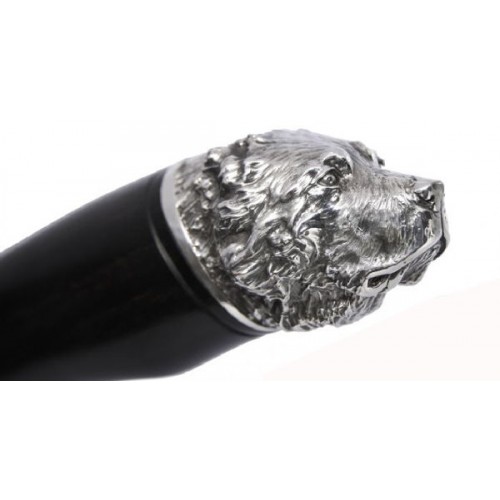 Рукоять, выполненная из черного дерева, удобно лежит в руке. Её украшает небольшая гарда, на обойме которой выгравирован круговой растительный орнамент. Навершие рукояти изображает голову алабая — выразительный портрет охотничьей собаки.