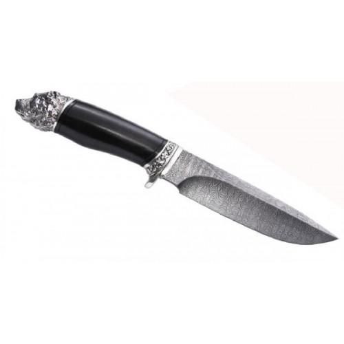 Охотничий нож "Алабай" — достойный клинок для истинных ценителей. Создан по высоким стандартам Петербургской компании «Северная Корона». Превосходная ручная работа высококвалифицированных специалистов превращает клинок в шедевр оружейного искусства. Выкованный из легендарной дамасской стали нож имеет два скоса, но заточен только с одной стороны. Мощный обух и ребро жесткости, посередине клинка, говорят о его серьезности и надежности.