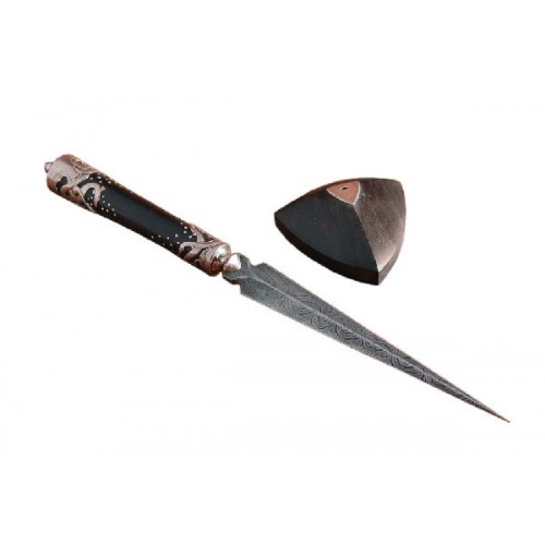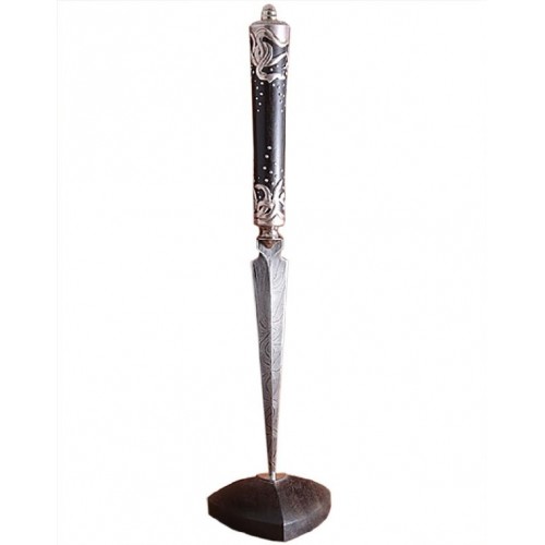 Четырехгранный клинок вставлен в основу из черного дерева. Композиция отсылает нас еще к одному средневековому сюжету - меч в камне, который являлся символом королевской власти в древней Британии.