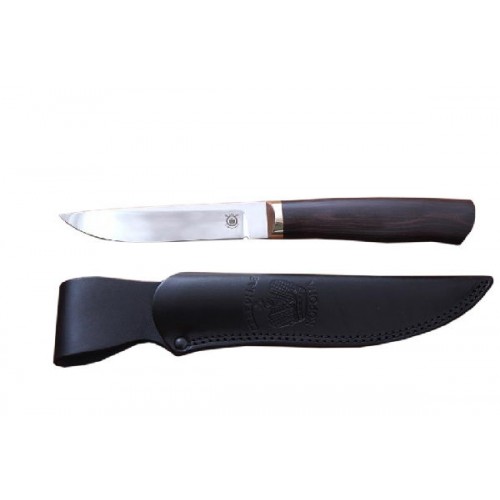 Клинок «Лиса» изготовлен из нержавеющей стали N695. Такому ножу нипочем ни дождь, ни снег, не ветер. Клинок имеет высокие прямые спуски и усиленную пятку. Рукоятка ножа выполнена из черного граба, который славится своей твердостью и прочностью.