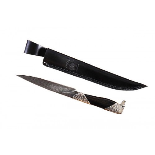 . Нож комплектуется паспортом изделия, кожаным чехлом и подарочной упаковкой.
