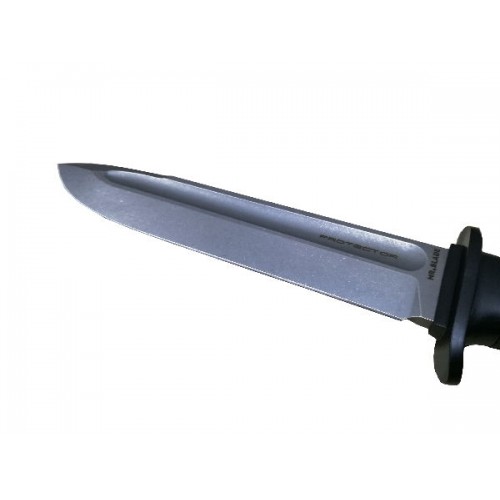 Никогда не знаешь, какие именно задачи придется решать в сложном туристическом походе или на охотничьем выезде. Нож с фиксированным клинком «ПРОТЕКТОР (PROTECTOR)» компании MR.BLADE (Мистер Блэйд) создан для тех, кто испытывает необходимость в мощном и надежном инструменте выживания в условиях дикой природы. Клинок имеет сложную, но интересную геометрию. Фальшлезвие и режущая кромка сходятся образуя острый и мощный кончик. Толщина обуха в самом широком месте составляет 5 миллиметров. Такая особенность обеспечивает высокий запас прочности и надежности. Рукоятка из ударопрочного пластика оснащена двухсторонней гардой, что повышает безопасность при выполнении силовой работы. Ножны тактического типа оснащены пластиковой вставкой, которая позволяет разместить нож на правой или левой стороне бедра.