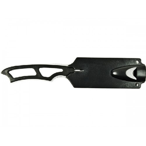 Такой нож получился очень лёгким и удобным для скрытого ношения, и учитывая, что клинок не складной, готов к бою в любую секунду. Пластиковые ножны (в ножны вмонтирован свисток), цепочка для ножа.