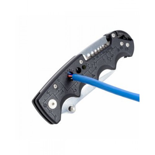Зарядитесь от Kilowatt, первого рабочего ножа, разработанного для электриков, а также тех, кому необходимо быстро и технично зачистить провод! Три отдельных системы (стриппера) очистят провод от изоляции на всей длине кабеля: стриппер для проводов диаметром 12-24, подстраиваемый подпружиненный стриппер для провода UTP в торцевой части ножа, и прямо в рукоятке - патентованный внутренний стриппер, использующий основное лезвие. Накладки с изображением электрических схем, клипса в виде мачты ЛЭП, изолированный упор для большого пальца и лезвие с выгравированной розеткой — все это делает этот нож уникальным.