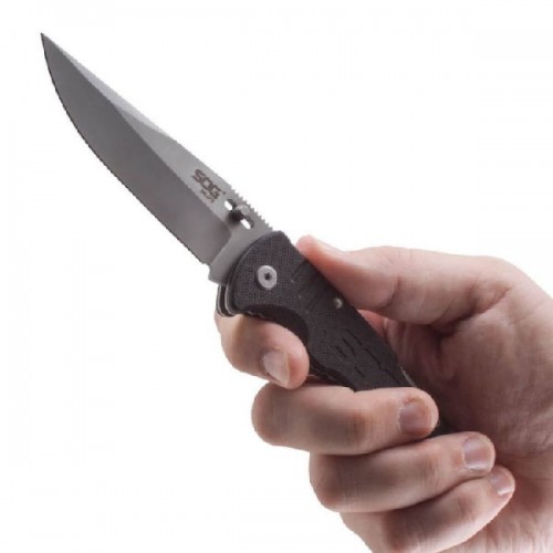 В Salute дизайнеры SOG воплотили лучшие решения для тактического складного ножа. Фигурный стальной корпус с накладками из G10 , надежный Back Lock , клинок в стиле "клип-поинт". Все это делает нож не только изящным, но и надежным.