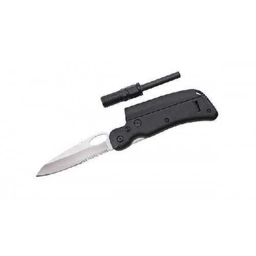 Предлагаемая модель содержит нож, свисток, инструмент для разжигания костра (кресало, огниво).
