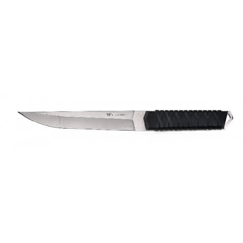 Нож, соединивший в себе традиции средневекового японского оружия и современные технологии. Накладки рукояти, закреплённые на потайных штифтах, имеют фрезерованную текстуру, имитирующую оплетку катаны. Клинок в стиле танто с вытянутым проникающим кончиком. Полноразмерный хвостовик Full Tang со стеклобоем в тыльной части обеспечивает высочайшую прочность ножа. В комплекте оригинальные ножны из качественной кожи, плотно фиксирующие нож внутри и оснащенные клапаном на двух кнопках, полностью закрывающим рукоять ножа.
