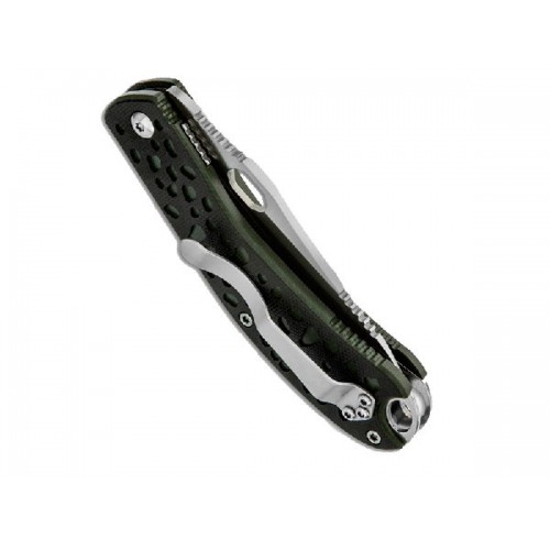 Рукоять изготовлена из двух слоев G10. Благодаря специальным прорезям, ее неровная поверхность предотвращает скольжение руки во время работы.