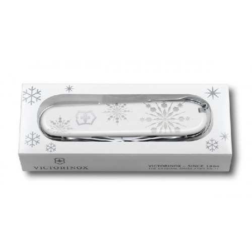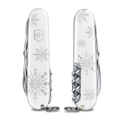 Впервые за свою историю компания Victorinox произвела нож со специальными накладками, имеющими тактильно-структурированную поверхность. Снежинки, нанесённые на рукоять методом рельефной печати, вполне осязаемы. Украшенный объёмной эмблемой в форме креста и щита, нож поистине притягивает взгляд. Эта специальная серия произведена ограниченным тиражом в 15 000 экземпляров. Есть чем порадовать коллекционеров в уходящем 2017 году!