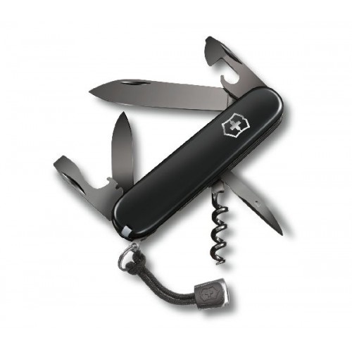 Складной швейцарский нож Victorinox Spartan с чёрной рукоятью содержит 9 элементов, выполняющих 12 функций: