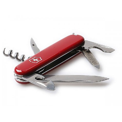 Складной швейцарский нож Victorinox Sportsman с красной рукоятью содержит 9 элементов, выполняющих 14 функций: