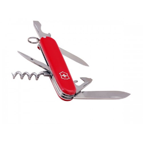Складной швейцарский нож Victorinox Tourist с красной рукоятью содержит 9 элементов, выполняющих 13 функций:
