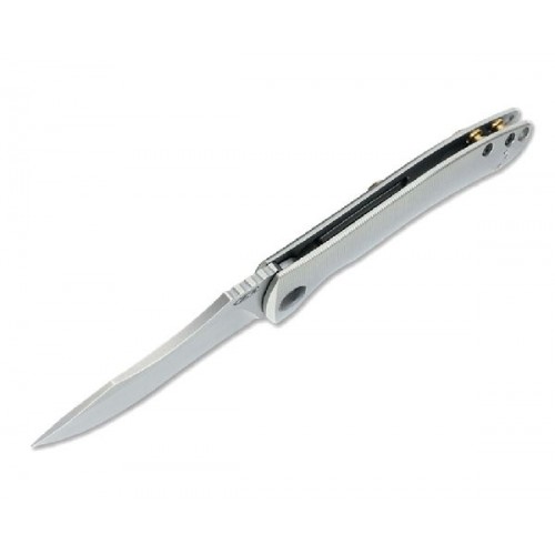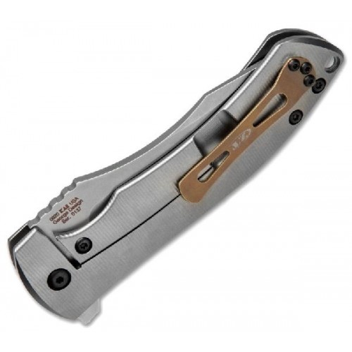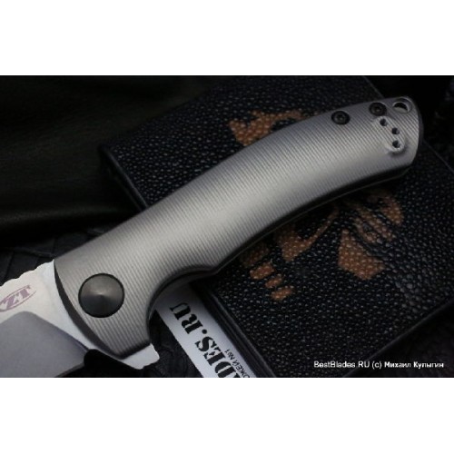Складной нож компании Zero Tolerance выполнен в модной стилистике городского минимализма. Здесь нет ни одной лишней детали, используется только серый цвет и его оттенки. Клинок сочетает в себе очертания хай-тек и взлетающий кончик восточного типа. Сталь клинка выполнена по порошковой технологии, главное достижение которой создание максимально однородной микропористой структуры. Сплав обладает хорошей ударной вязкостью, высокой износоустойчивостью и хорошо переносит резкие перепады температуры. Режущая кромка также имеет высокую твердость, что обеспечивает плавный и хорошо контролируемый рез. Нож создан для ежедневного использования, поэтому дизайнеры позаботились о снижении веса — плашки рукояти выполнены из облегченного титанового сплава.