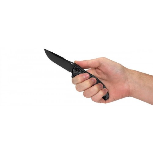 На клинке идет слой DLC — это алмазоподобное покрытие. Оно гораздо прочнее классических типов покрытий PVD, и обладает повышенной стойкостью к истиранию. Из-за системы KVT (Kershaw Velocity Technology) раскрыть нож не составит труда. Эта конструкция основана на шариковых подшипниках, что заметно облегчает ход клинка.