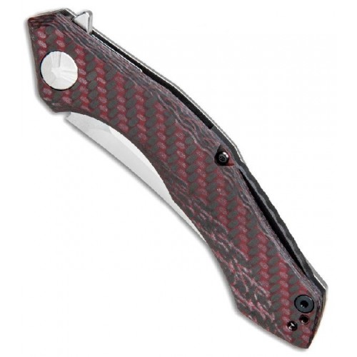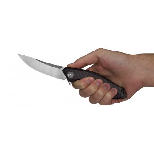Материал клинка CPM 20CV — одна из самых качественных и самых популярных сталей ножевого дела. Рукоять выполнена из титанового сплава Ti6Al4V — это наиболее распространенный сплав титана, имеющий превосходные механические свойства. Он считается самым прочным и жестким титановым сплавом. Так же стоит отметить что Ti6Al4V отличается особо высокой сложностью обработки. Плашка изготовлена из карбона. Это довольно дорогой, но невероятно прочный материал. Он очень легок и не боится влияния химических реагентов. Переплетения карбоновых нитей, вырисовывают уникальную текстуру, поэтому карбон прочно обосновался в сегменте аксессуарных и джентльменских ножей.