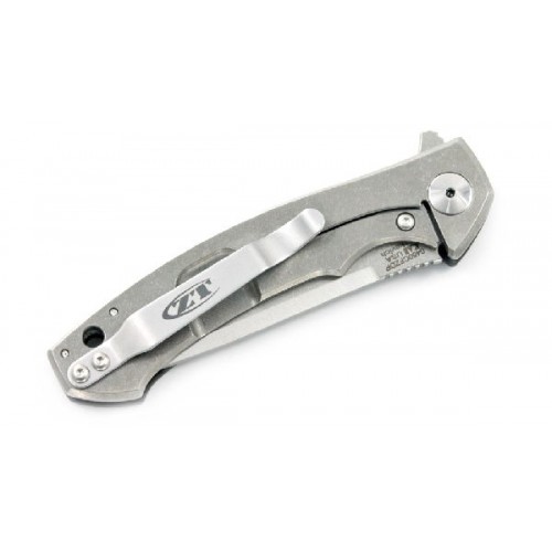 Складной нож Zero Tolerance 0450CFZDP Sinkevich - совместный проект компании Zero Tolerance и белорусского дизайнера Дмитрия Синькевича. Лезвие изготовлено из порошковой стали ZDP 189 японской компании Hitachi Metals. Лезвие имеет двухцветное покрытие two-tone satin/stonewashed. Рукоять выполнена из титана. Одна сторона рукояти с накладкой из карбона, другая – титан с покрытием Stonewashed. Система шарикоподшипников на оси и встроенный флиппер обеспечивают плавное открывание ножа.