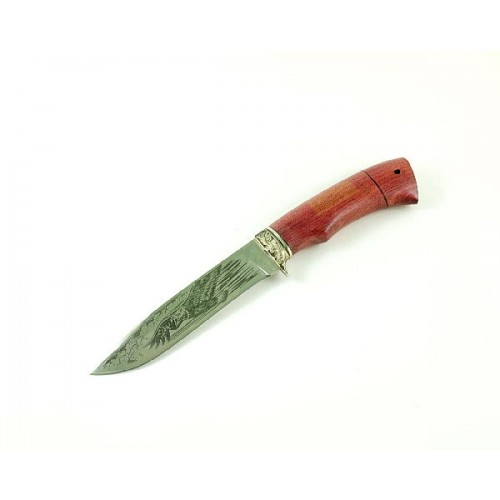Нож отличается высокой коррозионной стойкостью. Рукоять выполнена из амаранта. Монтаж клинка сквозной, через всю рукоять.