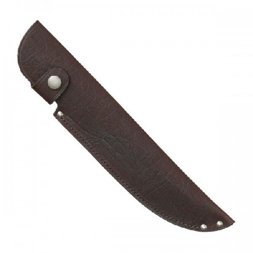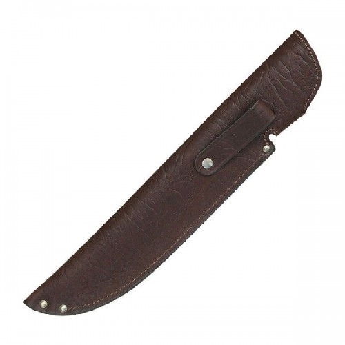 Ножны ХСН Европейские изготовлены в традиционной форме из натуральной кожи. Оснащены специальным кожаным креплением, фиксация клепкой для избежания выпадения ножа. В производстве используется итальянская фурнитура, которая практически не дает бликов. Раскрой производится на специальном оборудовании, что гарантирует высокое качество изделий. Для производства используется элитная кожа натурального сквозного прокраса. Она изготовлена по старинной технологии, не боится влаги, ружейного масла и солнечных лучей. Изделия, выполненные из этой кожи, будут служить долгие годы, сохраняя свой первозданный вид. Длина клинка 23 см.
