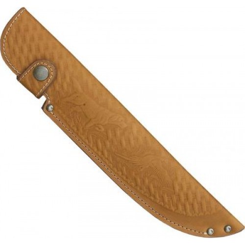 Ножны изготовлены в традиционной форме из натуральной кожи. С внутренней стороны обшиты материалом велюр. Оснащены специальным кожаным креплением, фиксация клепкой что бы избежать выпадения ножа. В производстве используется итальянская фурнитура, которая практически не дает бликов. Раскрой производится на специальном оборудовании, что гарантирует высокое качество изделий.Велюр – натуральная кожа