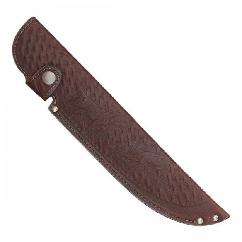Для производства используется элитная кожа натурального сквозного прокраса. Она изготовлена по старинной технологии, не боится влаги, ружейного масла и солнечных лучей. Изделия, выполненные из этой кожи, будут служить долгие годы, сохраняя свой первозданный вид. Длина клинка 23 см.