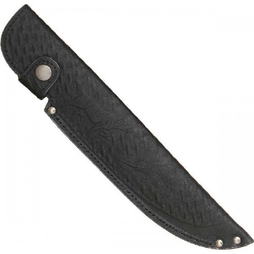 Для производства используется элитная кожа натурального сквозного прокраса. Она изготовлена по старинной технологии, не боится влаги, ружейного масла и солнечных лучей. Изделия, выполненные из этой кожи, будут служить долгие годы, сохраняя свой первозданный вид. Длина клинка 15 см.