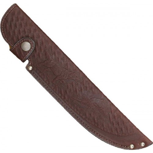 Для производства используется элитная кожа натурального сквозного прокраса. Она изготовлена по старинной технологии, не боится влаги, ружейного масла и солнечных лучей. Изделия, выполненные из этой кожи, будут служить долгие годы, сохраняя свой первозданный вид. Длина клинка 21 см.