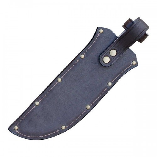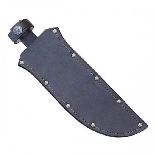 Изготовлены в традиционной форме из натуральной кожи. Оснащены специальным кожаным креплением для переноски на поясном ремне, фиксация клепкой для избежания выпадения ножа. В производстве используется итальянская фурнитура, которая практически не дает бликов. Раскрой производится на специальном оборудовании, что гарантирует высокое качество изделий. Для производства используется элитная кожа натурального сквозного прокраса. Она изготовлена по старинной технологии, не боится влаги, ружейного масла и солнечных лучей. Изделия, выполненные из этой кожи, будут служить долгие годы, сохраняя свой первозданный вид. Длина клинка 21 см.
