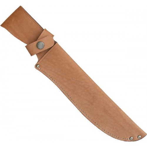 Ножны ХСН с рукояткой изготовлены в традиционной форме из натуральной кожи. Оснащены специальным кожаным креплением, фиксация клепкой для избежания выпадения ножа. В производстве используется итальянская фурнитура, которая практически не дает бликов. Раскрой производится на специальном оборудовании, что гарантирует высокое качество изделий. Для производства используется элитная кожа натурального сквозного прокраса. Она изготовлена по старинной технологии, не боится влаги, ружейного масла и солнечных лучей. Изделия, выполненные из этой кожи, будут служить долгие годы, сохраняя свой первозданный вид. Длина клинка 21 см