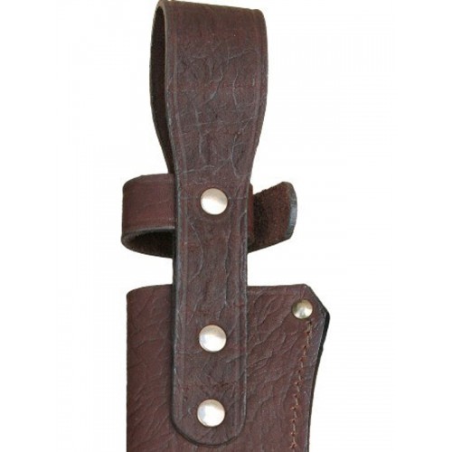 Изготовлены из натуральной кожи. Оснащены специальным кожаным креплением, фиксация клепкой для избежания выпадения ножа. В производстве используется итальянская фурнитура, которая практически не дает бликов. Раскрой производится на специальном оборудовании, что гарантирует высокое качество изделий. Для производства используется элитная кожа натурального сквозного прокраса. Она изготовлена по старинной технологии, не боится влаги, ружейного масла и солнечных лучей. Изделия, выполненные из этой кожи, будут служить долгие годы, сохраняя свой первозданный вид.