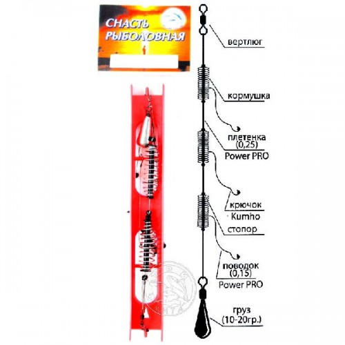 Эта оснастка является одной из разновидностей донных снастей, которые являются достаточно уловистыми. Основой такой оснастки являются кормушки-пружины. Их может быть несколько, и соединяются они между собой леской, диаметром 0,3-0,5 мм. Крепить их можно любым способом. Рядом с каждой пружиной расположен крючок на поводке.