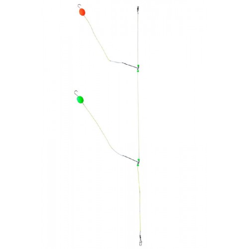 Оснастка имеет два многофункциональных поводка на металлической скрутке, со свободным вращением. Термоусадочная трубочка обеспечивает необходимую жесткость и эластичность, отводит поводок с крючком-поплавком от основы, не давая возможности захлестывания при забросе, а также компенсирует рывки и сохраняет ценную наживку.