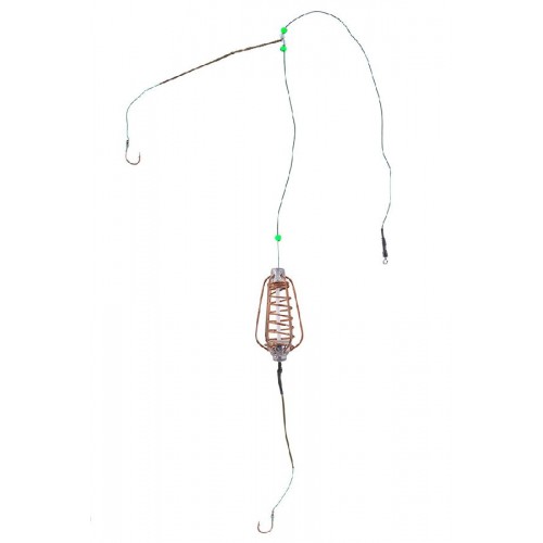 Кормушка оснащается прикормом. Насадка для нижнего поводка - кукуруза, червь или тесто. Насадка для отводного поводка - кукуруза или червь.
