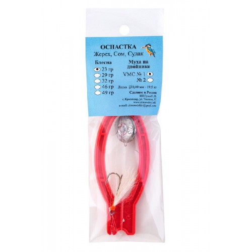На основной ставке в 35 см от блесны находится петля длинной 4 см, завязанная хирургическим узлом, не прослабляющим и не передавливающим оснастку. Петля оснащается мухой, стриммером, вабиком на двойнике, тройнике или одинарнике, имитируя в воде малька. Оснастка заканчивается верхней петлёй, которая вяжется к леске.