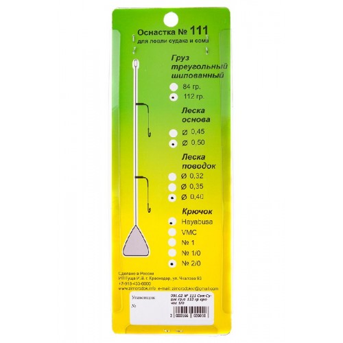 Оснастка Зимородок сом судак №111 112гр 1/0